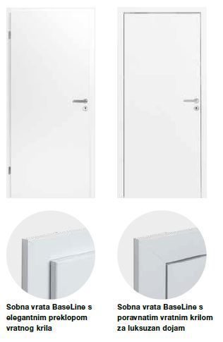 • Kompletan element : krilo vrata sa ili bez prekklopa , okvir i ručka od nehrđajućeg čelika Linea (mat nehrđajući čelik, rozeta okrugla)