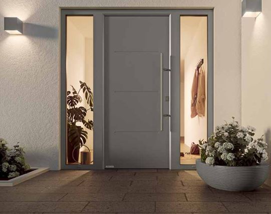 Naš svjetski prvak među aluminijskim kućnim vratima s koeficijentom toplinske izolacije, UD-vrijednosti, do 0,47 W/ (m²·K)*, oduševit će Vas sa serijskom RC 3 sigurnosnom opremom s 9-strukim zaključavanjem i visoko kvalitetnim vratnim krilom od hibridnog materijala karbonskih i staklenih vlakana.
